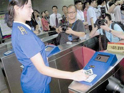 昨日下午2时,国内首张“手机地铁票”在公园前地铁站面世。记者现场观看了演示过程,市民只需用手机往地铁闸机的读卡区前一晃,只听“滴”的一声闸机扇门就打开了,再在出闸机前一晃,就顺利地刷卡出站。