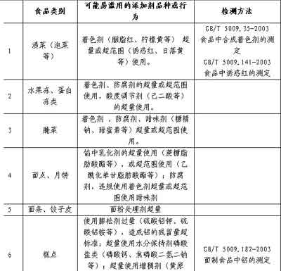 食品加工过程中易滥用的食品添加剂品种名单(第一批)
