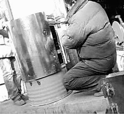昨天(12月24日),记者来到天桥区臧家屯小区附近,一条街旁有几家加工铁炉子的业户,其中一家业户前摆着一些大铁桶,业户在一个蓝色的大铁桶前忙活着。记者走近一看,业户在加工地瓜烤炉,他给蓝色的大铁桶包上半米高的白色铁皮。“你这里加工地瓜烤炉吗?多少钱一个?”记者问。“300多元一个。”业户指着正在加工的大铁桶说,“这个烤炉已经有人买了,你如果想要烤炉,先挑个铁桶吧。”