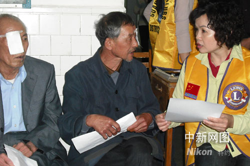 狮子会员工为刚做完复明手术的患者嘱咐注意事项。