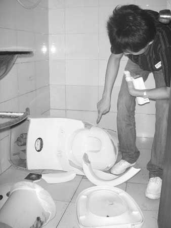 民警勘查现场,发现马桶安装有猫腻,“马桶上有个孔,用于安装螺丝固定的,可能安装工图省事,没安装螺丝,只在马桶和墙体接触面涂了点玻璃胶。”听到这话,受伤小伙气愤不已,“原来,都是装潢工偷工减料惹的祸。”在民警的调解下,招待所的老板赔偿小伙450元医疗费,并为小伙减免了房费。老板表示,将以此为戒,对招待所其他房间的马桶进行检查,排除安全隐患。 (作者:陈泓江)