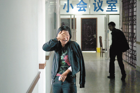 王女士在医院的走廊里掩面而泣 记者 阚旋 摄