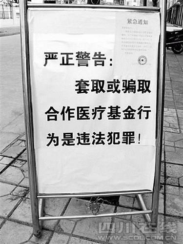 警方查明,2008年1月至2008年7月16日,杨国等人以500元、1000元不等的价格,借用他人户口、参合证,在成都购买虚假住院资料,然后在安居区、大英县新型农村合作医疗管理中心等单位报销47人次,报销金额高达60余万元。据悉,此乃四川首例诈骗新型农村合作医疗基金团伙系列案。