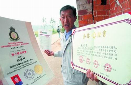 “有些人说这些证书都是假的,对此很是不屑一顾,为什么我每次拿着去火车站特殊窗口买车票,售票员都没说什么啊?”熊学贤沉浸于自己的“巨大成就”之中。作为没见过多少世面、仅有初中文化程度的山区老农,他自然不知道颁发证书或者邀请他参加会议的机构,大部分并不是国家法定的权威组织,只不过是打着各种诱人的幌子骗人钱财罢了。