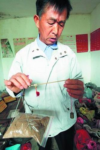 推开二楼的一间屋子,一股霉味扑鼻而来,地上摆放着数百个装有各类中草药材的塑料袋和坛坛罐罐。“这些药材中99%是植物类药品,也有少数动物类和矿物类药材,有些是我从邵东等地采购来的,有些是我上山采来的。”熊学贤拿出几包已包装好的粉末状药品告诉记者,这些是他研究出来的药品,分别命名为“恶性肿瘤1号内服药”、“恶性肿瘤2号外敷药”、“艾滋病攻克剂”等。记者看到,这些药品的外包装上无任何部门的批文,仅有一张打印的“说明书”。熊学贤说,他的这些药品很有效果,已治好了多位患艾滋病和癌症的病人。