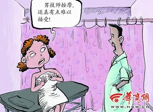 现在,不少美容院里从市场需求方面考虑都聘请有男技师,这些男技师大多接受过专门的培训,他们一般在按摩手法上尽量符合顾客的需求。她认为,只要美容院不涉及色情的因素,其实就和女病人到医院找男医生看妇科病一样无可厚非,市民不应以偏见的眼光来看待。本报记者 李琳