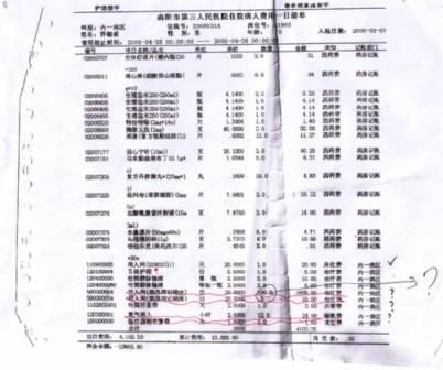 据了解,反映问题的这三位老人均为公费医疗病人,三张清单均出自南阳市第三人民医院内一病区。
