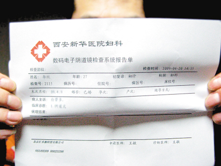 昨天上午,李女士告诉记者,自己最近小腹微微疼痛,怀疑得了妇科病。因为住在大雁塔附近,离新华医院比较近,又听朋友说医院妇科有个王医生看得还不错,她就去医院检查。