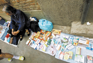 走近一看才发现,这些卖药的多数是老年人,只有少数的年轻摊主。摊位上摆放最多的是牛黄解毒片、鱼腥草片、大山楂丸、六味地黄丸等中药,还有麝香壮骨膏等。绝大多数是过期药,有的药品包装陈旧,甚至已经开了封。在1个年轻人的摊位上,还销售着葡萄糖针水及部分西药。问及药品来源,这位年轻的男摊主称他也是向别人进的货,自己拿来卖。一位常年在这里卖药的老奶奶极力向记者推荐她的药品,并称:“正规药房下柜的货,没事儿。”
