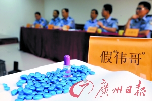 昨日,记者在发布会现场看到了一箱箱被查获的假冒“万艾可”(俗称伟哥),这些“伟哥”的外包装精美,但将蓝色的药丸拿在手中,便发现质量很差,药衣很容易掉色。
