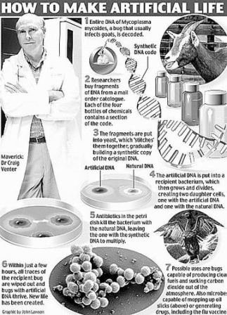 2010年5月20日,由美国科学家克雷格·文特尔主持的研究团队宣布,世界首例人造生命——完全由人造基因控制的单细胞细菌诞生。克雷格·文特尔将“人造生命”起名为“辛西娅”(Synthia),意为“人造儿”。
