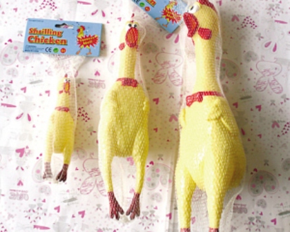 昨天中午,家住南京燕子矶太平村的朱女士接到邻居电话说,屡屡听她家里有一阵阵惨叫的公鸡叫声。难道有黄鼠狼叼鸡闯进家里进食?朱女士很奇怪,于是跑回家一看,原来女儿在用劲捏一只黄色玩具大公鸡,玩具鸡发出阵阵惨叫。再一问,女儿居然说这样可以减轻开学所带来的压力,同学们很流行玩这样的“惨叫鸡”,这番话让朱女士瞠目结舌。