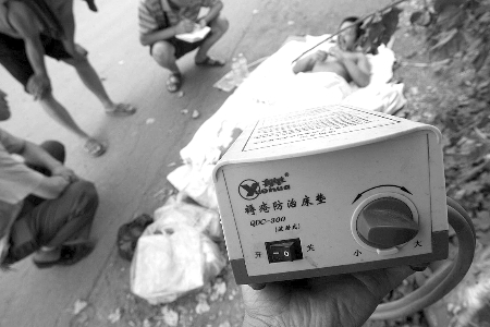 昨天下午4时30分,记者在巩义市西村镇通往辖区东村的公路边看到,一名男子躺在破旧的被褥上面,下身覆盖着单子,一段疏尿导管从单子下露出,盛尿的塑料袋丢在马路上。他的身边,摆放着两瓶矿泉水和少量衣物。耸立马路边的两棵杨树,遮挡些阳光使他免遭曝晒。看到陌生人靠近,男子眼圈通红。