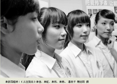昨天,21岁的单家四姐妹同时走进了同一家公司报到,从这一刻起,四人的关系除了姐妹、同学、战友之外又多了一重身份——同事。