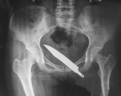 在此后4个多月里,施小姐不仅疼痛加剧,还出现尿血症状。她辗转去了几家医院,但都被视作膀胱炎。前不久,她在安亭医院做X光检查,这才发现膀胱内竟有一把长15厘米、宽3厘米的刀片。