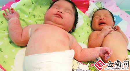 周志群告诉记者,她身高1.62米,未怀孕前体重有70公斤。怀孕期间,她没有吃任何营养品和保健品,每天正常饮食,每周炖锅排骨吃,经常吃水果。她的丈夫赵兴学今年43岁,体重73公斤,身高1.70米。他告诉记者,妻子是昨天凌晨5点左右临产症状明显便就近来到昆明圣安医院生产。