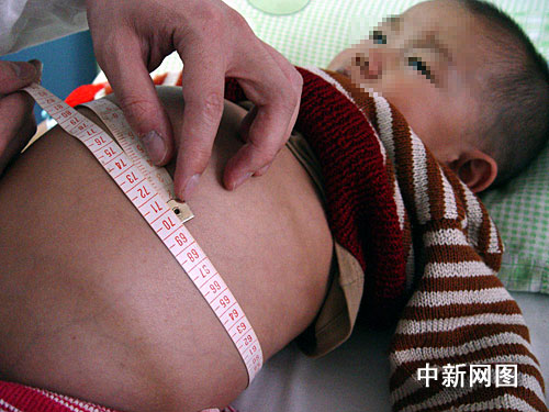 中新网上海十一月二十四日电 (记者 陈静)两岁小男孩手脚纤细却挺着二尺一寸的“啤酒肚”。记者今日获悉,上海儿童医学中心外科新近成功为该名腹腔巨大肿瘤患儿手术切除相当其体重三分之一的肿瘤。小男孩今康复出院。