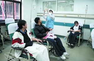昨日上午11时许,304医院急诊科,5名穿着校服的学生正在采血化验,其中3人正在输液。
