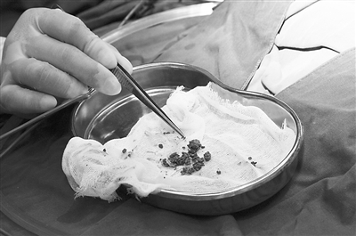 手术进行十多分钟后,揭开的谜底令余雷大吃一惊:南宝食道里不明物体,竟是小粒燃烧过的蜂窝煤渣!见此情景,手术台的医护人员一时都呆住了,余雷强忍激动,从毛毛食道中掏出大大小小几十粒碎煤渣。手术进行了两个多小时,医生尽数掏尽煤渣,还打通了毛毛闭锁的食道。不久他就能正常吃奶。