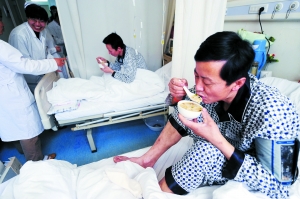 孙萍表示,病人的恢复进程较快。6日,为了促进消化,他们的食物以“汤水”等流质为主;7日午饭时,医生就开始为部分病人喂食汤面等半流质食物。为了增加营养,加快身体恢复,医生对他们实行“一日七餐制”。