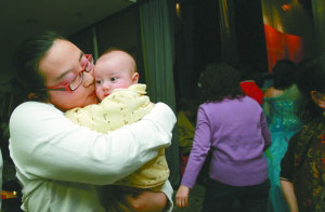 昨日,中国大陆首个试管婴儿郑萌珠把不到1岁的混血试管婴儿抱在怀里。