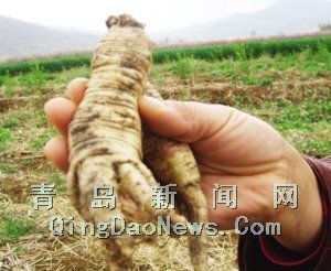 记者从一名村民处见到了两棵刚被挖出来的人参,这些人参的根茎十分粗大,根低部较小分叉,呈黄白色,最大的直径约5厘米,长约20厘米,最小的像小葱般粗细。但由于人参刚发芽还看不出叶子是什么形状。藏村60多岁的村民吕先生告诉记者,很多年以前,有名外地人曾在钱谷山上种植过人参,现在挖出的可能是当时留下的种苗。昨天下午,记者将一棵人参送到了即墨市林业局,森保站韩站长称,根据外型特点判别确实是山参,但不像是野生的,有可能就是当时留下来的种苗。