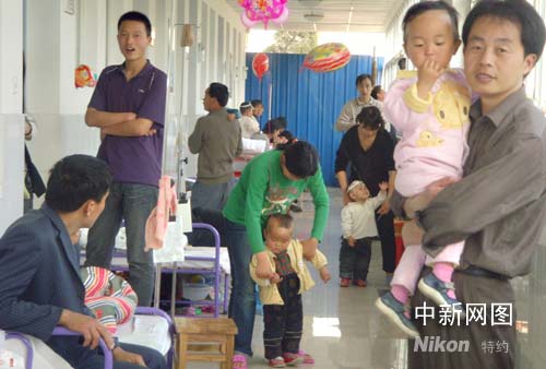 中新网4月30日电 有的患儿伏在妈妈的背上,看起来很安静,也有的惬意地享受暖阳的照射,还有的躺在病床上,不停地在玩耍……4月29日下午,在阜阳市第一、第二人民医院肠道病毒EV71病房外,上述场景随处可见。