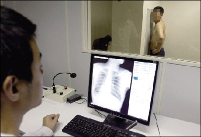 记者查看李建勇检查身体所拍的各种各样的X光片、B超图片发现,他的说法属实:把正常的人体脏器分布图翻过来看,就是他的脏器分布图。