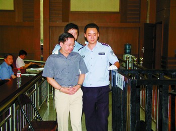 杨志毅被押上被告人席。戴元舟 刘义辉 摄影报道