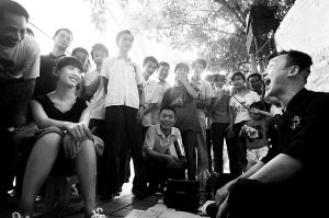 大千世界,无奇不有。昨日下午,来自重庆合川30岁的男子郑余,来到重庆市区石桥铺街,向路人兜售自己的笑容。他的笑有12种,包括微笑、苦笑、皮笑肉不笑、狂笑等。好奇的市民纷纷驻足观看。