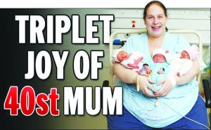 英国考文垂市肥胖女子丽恩·索特日前通过剖腹产手术生下了一组三胞胎,体重254公斤的她也因此成了世界上最肥胖的“三胞胎妈妈”。据悉,为了确保丽恩安全分娩,丽恩的剖腹产手术必须像军事行动一般精确,为此医院动用了4名外科大夫、4名麻醉师、5名助产士、12名新生儿顾问和护士共同帮丽恩接生下了她的奇迹三胞胎婴儿!