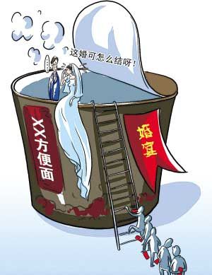 原来,这家酒店因头一天发生“疑似食物中毒”事件,婚宴即将开席时,卫生部门突然来通知,称调查结果没出来前,不允许酒店炒菜。但由于之前已签订5对新人的婚宴合约,所以只好为前来庆贺的近千宾客,提供大桶方便面充饥。