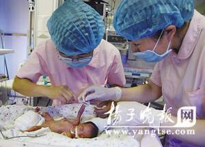记者昨天上午来到淮安市妇幼保健院新生儿科时,只见在医护人员的帮助下,冉冉的母亲闵晓元正在用奶瓶给她喂奶,记者注意到冉冉的脖子上有一个银制长命锁。闵晓元笑着告诉记者:“这是我们特意为女儿买的,希望她长命百岁。冉冉这个名字也是庆贺她重获新生的,但愿她的以后就像早晨的太阳一样冉冉升起”。站在一旁的父亲刘峰望着这个来之不易的女儿则百感交集。据其介绍,他与妻子婚后一直没有小孩,去年年底在南京做了“人工助孕”手术后,妻子怀孕第24周时于今年5月30日在盱眙县某医院产下一对试管双胞胎女婴。由于这对双胞胎严重早产,在医学上称之为极不成熟儿,小女儿刚出生就不幸夭折,体重只有800克的大女儿生命体征也不稳定,于是连夜转至淮安市妇幼保健院进行抢救治疗。他告诉记者,他们当时真的以为女儿根本没有存活的希望,是医院救了他女儿。前几天医院通知他昨天女儿可以出院时,他就在盱眙县城一饭店订了20桌酒席,宴请所有亲朋好友于昨天中午一起热闹热闹庆贺女儿出院。现在饭店的客人都催他好几遍了,让他赶快将宝贝女儿带回盱眙。他说:“医院就是我们的恩人,现在还欠医院7万元治疗费,我们一定慢慢还”。