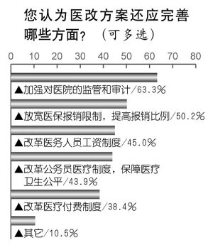 调查显示,63.3%的人表示期待加强对医院的监管和审计。