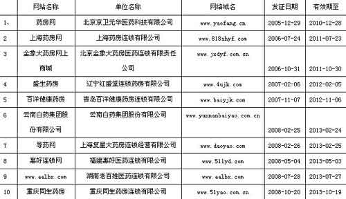 中新网12月8日电 今天上午,国家药监局新闻发言人颜江瑛通报了截止到2008年12月8日,国家药监局批准的向个人提供非处方药品的10家互联网药品交易网站。(据中国网文字直播整理)