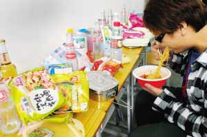 学生小江宁愿在宿舍吃泡面也不想去饭堂吃饭。信息时报记者 叶伟报 摄