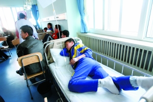 昨日上午,北医三院儿科急诊部,海淀区第二实验小学的4名学生因腹痛被送来治疗,其中6年级的梁同学病情较为严重,需要挂葡萄糖氯化钠点滴,医生诊断其为胃肠炎。
