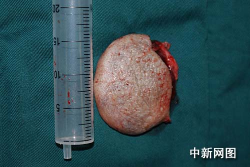 4月1日,专家们为松松实施了手术。在3个多小时的手术中,医生们小心翼翼地一点点将肿块剥离、切除。术中,专家们发现,这个“鸭蛋”为后枕部巨大海绵状血管瘤,并且已经严重侵犯到松松后脑的皮肤、皮下和肌肉组织。所幸手术及时、成功,不然随着松松年龄的增长,血管瘤还会对患儿造成更大伤害。