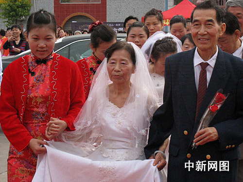 来自北京的张森州和江忆秋一同走过了四十一个春秋。老夫妻俩均是戎马一生的军人,目前已退休。张老先生告诉动情地说:“六十年代的婚礼实在太简陋了,我们是在一个周末,买了两斤糖请战友们吃吃,就算是结婚了。今天的这场盛大婚礼,让我深切感受到了新时代的美好生活,也让我们老夫妇重温了曾经走过的幸福时光。”