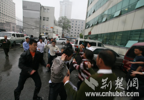 23日下午,湖北省妇幼保健医院门前,发生一起流血事件:多名患者家属在与医院因医疗事故协商发生纠纷时,医院一伙保安竟用“甩鞭”和钢管等将患者家属打倒,造成多人受伤。