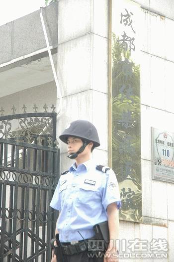 大批媒体记者聚集在门口,公安干警把门,媒体一概不准进