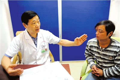 北京军区总医院东院的王沛森主任在为小杨检查。本报记者张斌摄