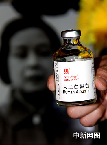 中新网杭州6月1日电(记者张兆岭)今天记者从浙江省食品药品监督管理局获悉,浙江省诸暨市一名八十岁老妇傅淑英因风湿性关节炎发作,身体虚弱。今年五月五日,其家人通过诸暨市中医院药房蔡某购买了一瓶高价“人血白蛋白”;这瓶白蛋白输入傅淑英体内后,傅出现全身痉挛、头痛等症状,不到十分钟傅即死亡。