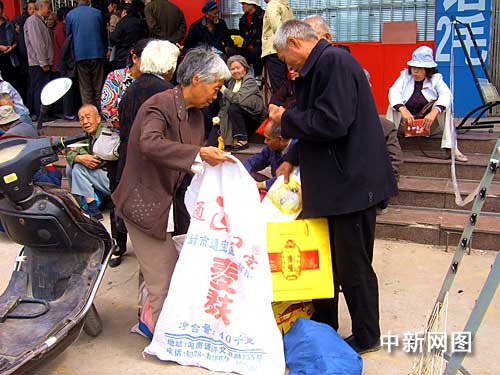 开封市一家保健品专卖店门前,一种保健食品正在搞促销活动,前来购买的人络绎不绝,其中绝大多数是农民。记者在现场看见一对农民夫妇,正在往大塑料袋里装保健食品。这对农民夫妇告诉记者,他们是在听了电台的广告后,才从乡下赶到开封市购买的,这些“药”花费了近3000元。
