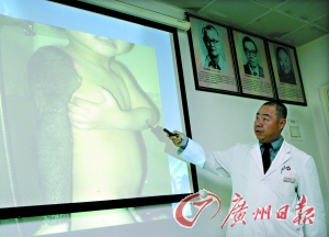 “这是一种极为罕见的疾病,发病率约为五十万分之一。一旦患上就有超过10%的可能性会恶变。”朱家源教授介绍。(涂端玉)