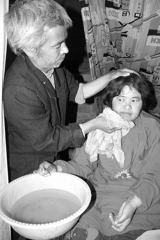 由于妻子大小便失禁,每天,刘贵志都像对待小孩一样精心照料。无论春夏秋冬,他天天都要去村中央的水坑里给妻子洗尿布。“给她洗尿布我不怕,我就怕同龄人那异样的眼光,大冬天,看到有人从旁边过,我就把尿布连手一起放进冰凉的水里不敢拿出来……”
