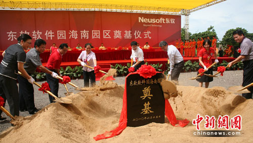 中新网澄迈6月15日电(付美斌 冯岛 张茜翼)15日,在海南第八届盈滨龙水节澄迈县重点项目启动仪式上,中国最大IT解决方案与服务提供商东软集团与澄迈县政府就“澄迈医疗健康信息化项目”正式签署合同。启动仪式上,由东软集团投资建设的东软软件园海南园区在澄迈海南生态软件园进行了奠基。