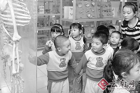 “这是什么骨头?”昨日,在昆明医学院人体解剖学标本陈列室里,面对浸泡在福尔马林中的人体器官,云南师范大学幼儿园250多名孩子提出各种各样的问题。作为“生命、生存、生活”教育的内容之一,云师大幼儿园希望能通过此次参观让孩子们更直观地认识自己的身体,树立正确的观念。此举得到部分家长的支持,却受到部分心理学家的反对。