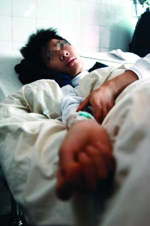 16岁的罗强(化名)躺在病床上,医生说他手术后恢复良好。秦楼/摄