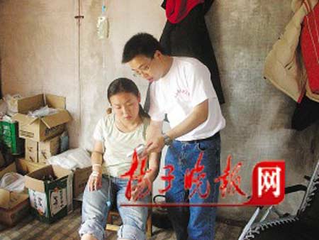 听完病情介绍,杨阳脸色煞白。队员们安慰她说,这病只要坚持治疗,很快就会好的。医疗队员找出医疗点最好的抗生素对杨阳进行抗感染输液治疗。听说患者5日就要搬出平通,不能再继续接受输液治疗,刘强晖医生立即从行李包中拿出仅有的一盒从家里带来的高效抗生素左氧氟沙星交到杨阳手中,让她回家口服。刘强晖前天清晨外出巡诊时着了凉,这两天重感冒,咳得厉害,其实他也很需要这盒药。看到江苏医生把自备的药送给自己,杨阳充满感激。临别前,杨阳拿出一袋茶叶,硬要送给医疗队员们,“这是我们平武的特产青梅茶,是我们灾区人民的一点心意,请务必收下……”